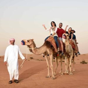 Transfers in an air-conditioned 4×4 Toyota Land Cruiser from your hotel to the safari site are included in the package. You will enjoy a dune bashing experience at the safari site, along with a chance to take pictures as the sun sets. When it gets dark, we’ll transport you to our camp in the desert so you can ride a camel. In addition to endless Arabian coffee, tea, cold water, and soft beverages, there will be a delectable BBQ buffet dinner. The highlight of the evening will be a live performance during supper that features traditional Arabian dances including the tanoura and belly dances.