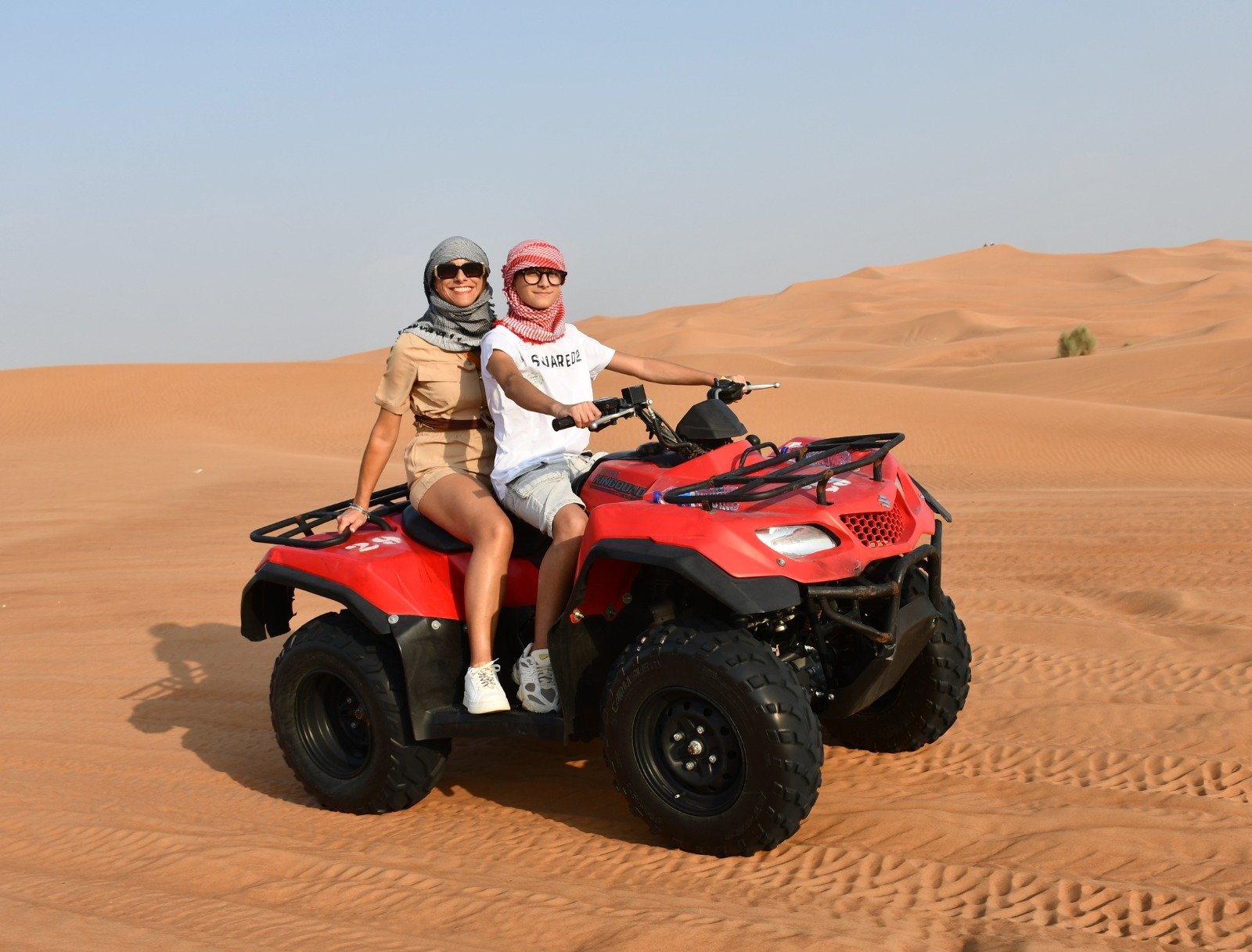 🏜️ Thrilling double-seater quad bike ride across red desert dunes